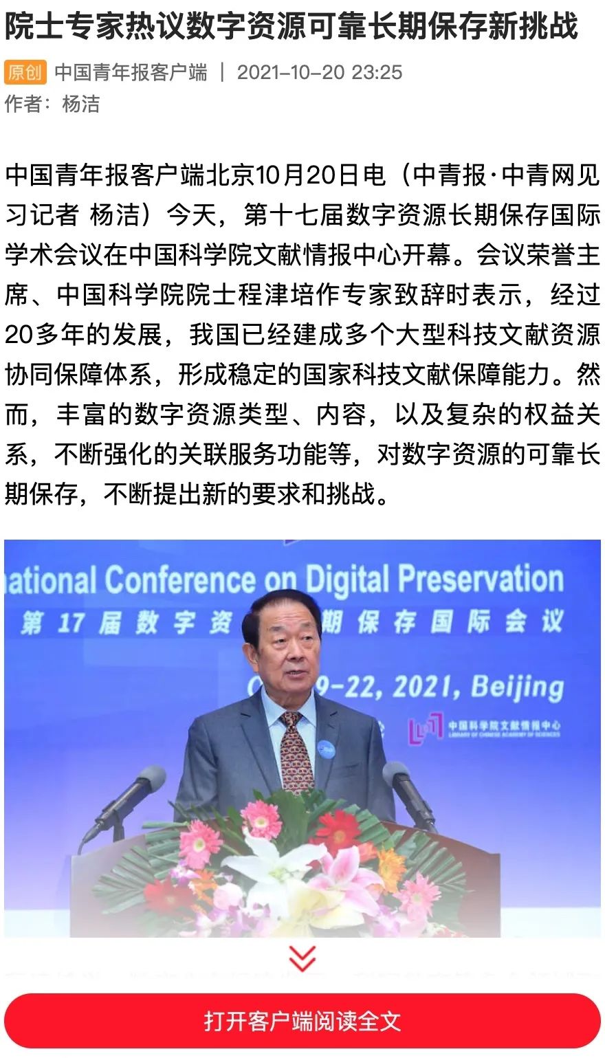 ·中国青年报社:院士专家热议数字资源可靠长期保存新挑战
