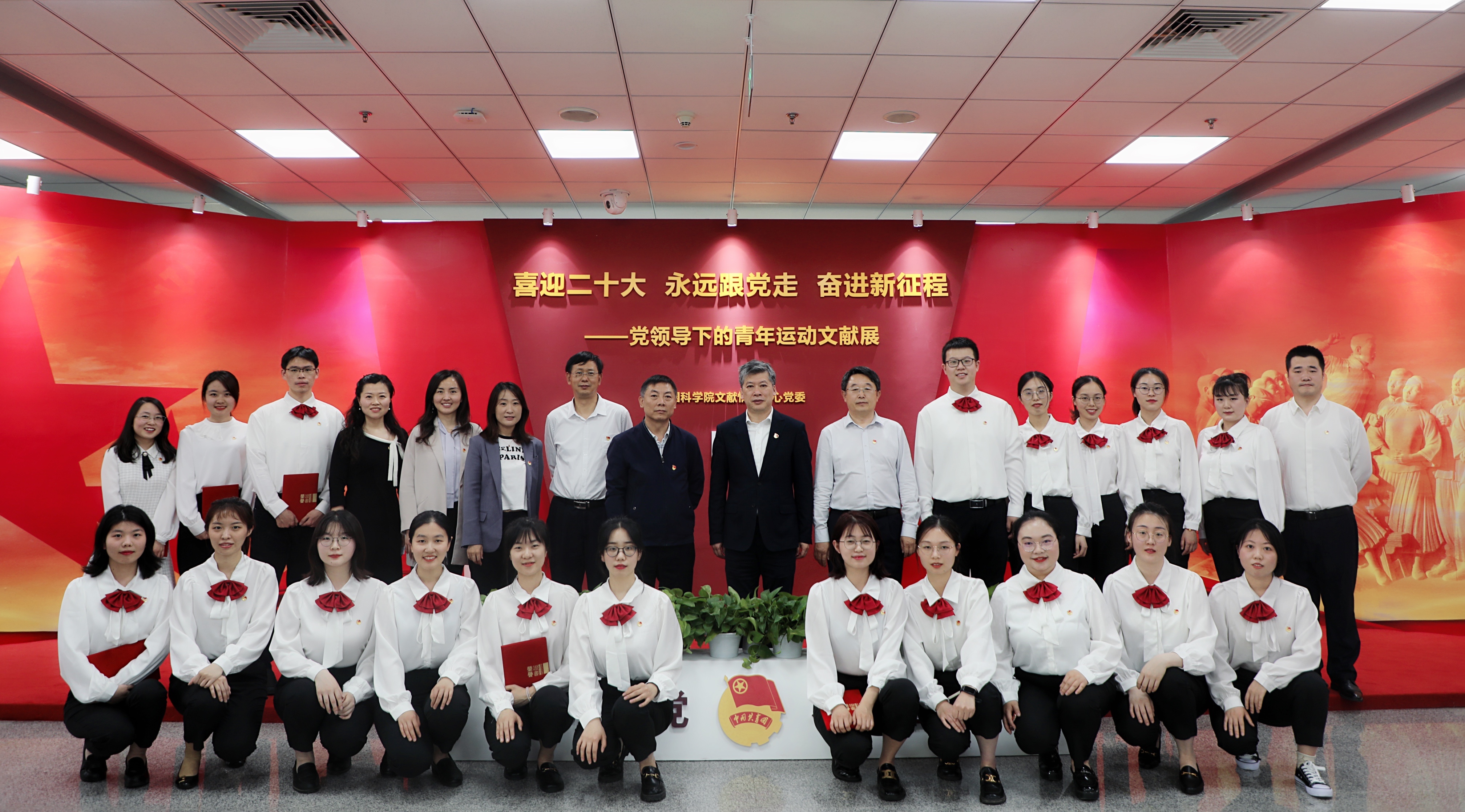 文献情报中心举办“喜迎二十大,永远跟党走,奋进新征程——党领导下的青年运动文献展”开幕式暨纪念五四运动103周年表彰大会